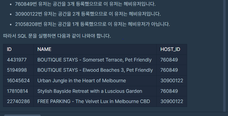 코딩테스트 연습 - 헤비 유저가 소유한 장소